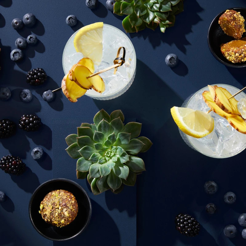 Energy Stimmungsmood Ingwer-Drink Energyballs mit frischen Blau- und Brombeeren