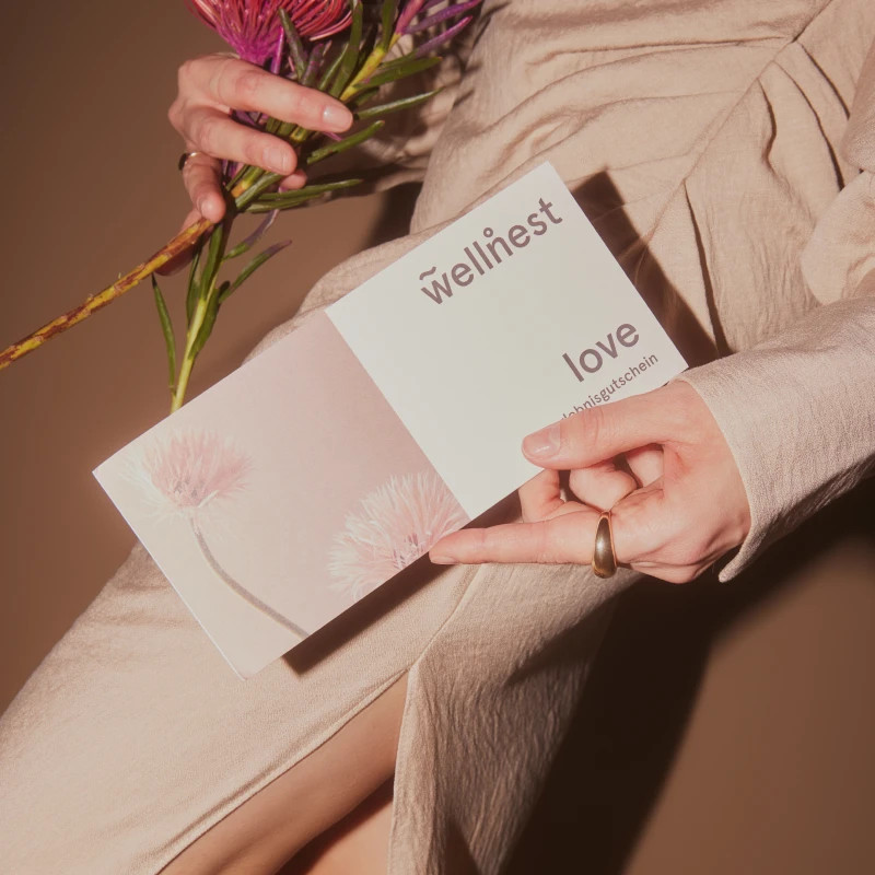 Schenkt euch Liebe - Mit diesem Erlebnisgutschein für eine Auszeit im love-vibe schenkst du deinen Liebsten echte Vorfreude und ein unvergessliches wellnest-Erlebnis mit Kerzenlicht, Sekt & vielem mehr. Mit unserem Erlebnisgutschein kann der oder die Beschenkte auf wellnest.me und in allen wellnest Filialen sein Nest buchen. Du kannst zwischen einer Geschenkkarte und einem digitalen Gutschein (als PDF per E-Mail) wählen.