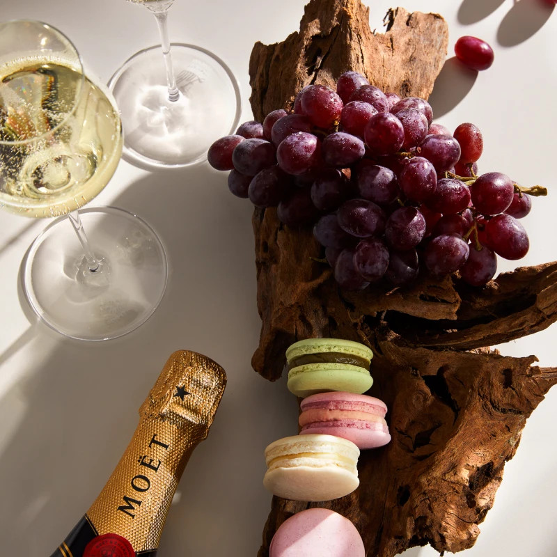 rote Trauben und Macarons